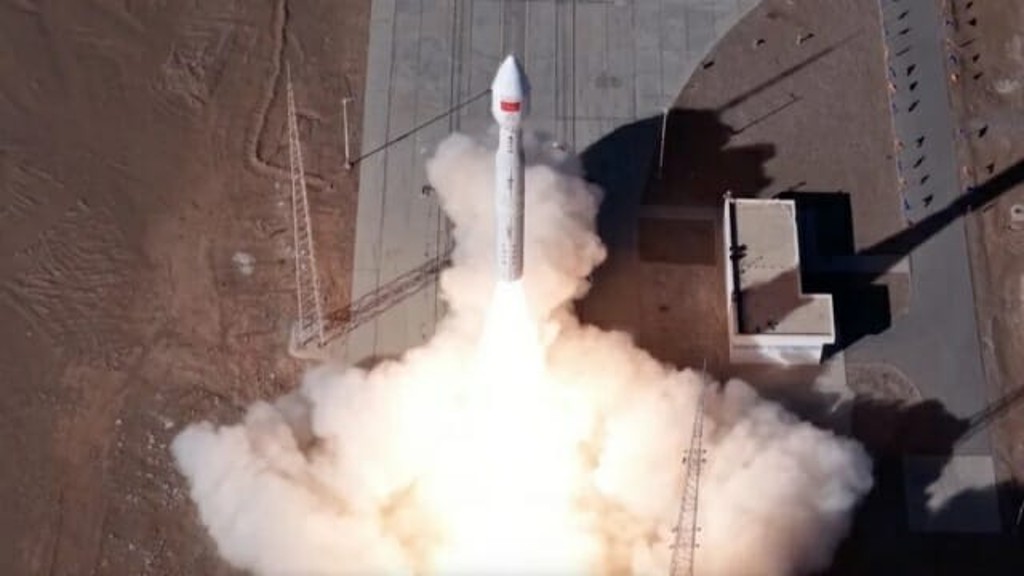 중국국가우주과학센터(CAS Space)의 ‘키네티카-1’ 로켓이 지난 9일 주취안 위성 발사 센터에서 두 개의 기술 실험 위성을 발사하는 모습/CCTV
