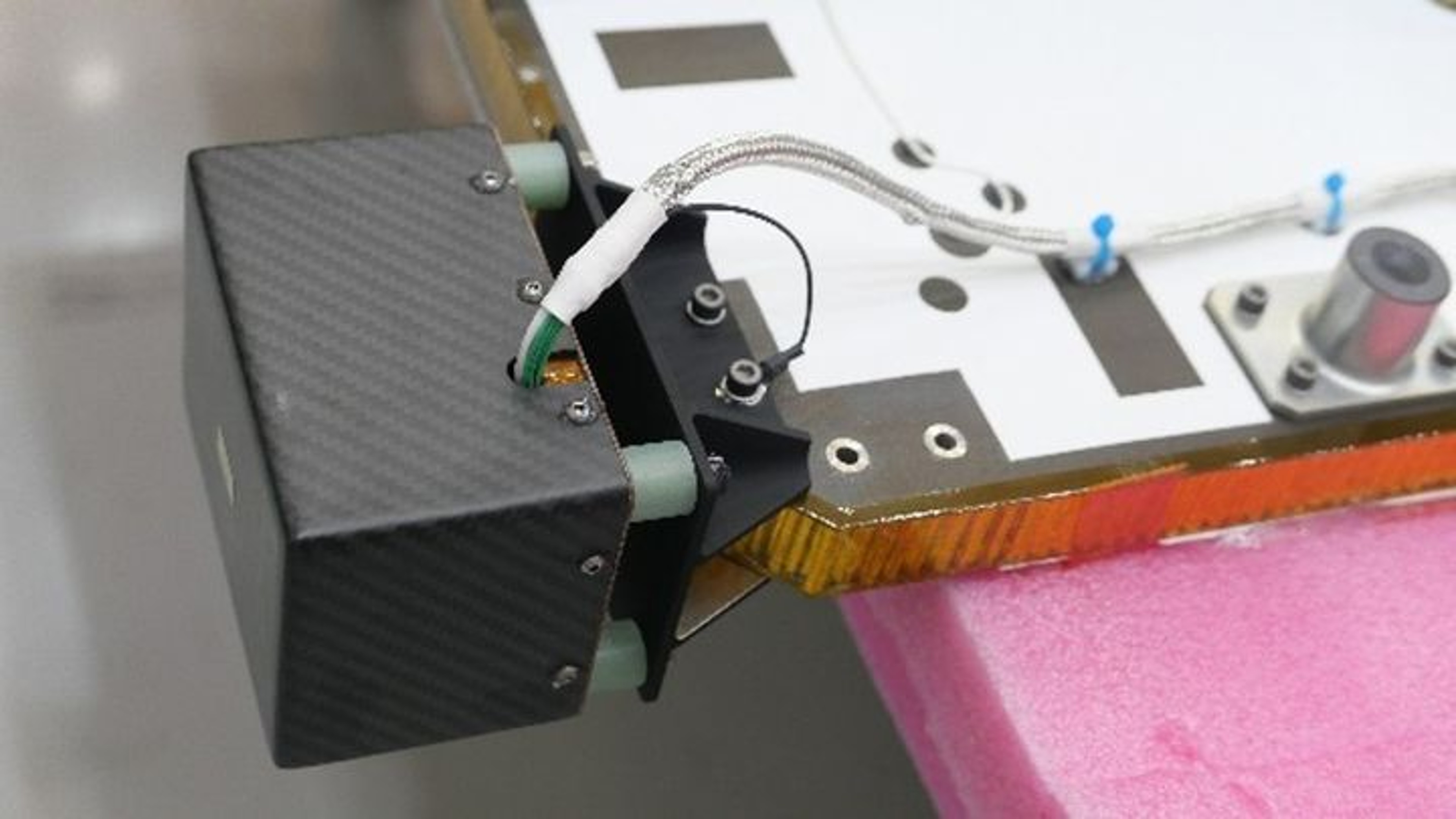 누리호 4차 발사 주탑재 위성인 차세대중형위성 3호에 실리는 전리권 플라즈마 및 자기장 관측기(IAMMAP)의 자기장 측정기가 위성에 탑재된 모습